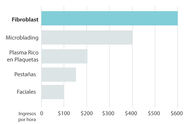 Fibroblast es la técnica más rentable en la industria ahora mismo. Podrás ganar en promedio $600/hora y entre $350-$1.200 por tratamiento.